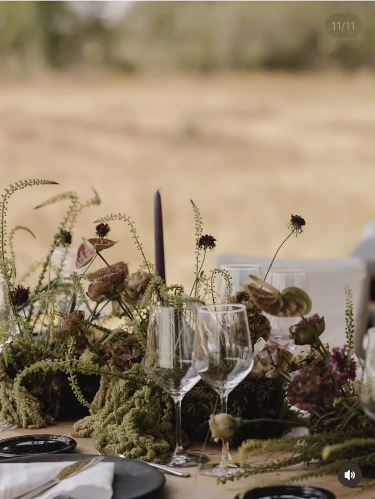 Taking inspiration from the season itself, the design will utilize moody burgundies and rich browns to bring warmth to the changing Seattle weather. Paired with airy materials and wispy floral arrangements, the wedding design will bring a harmonious union of colors and textures.