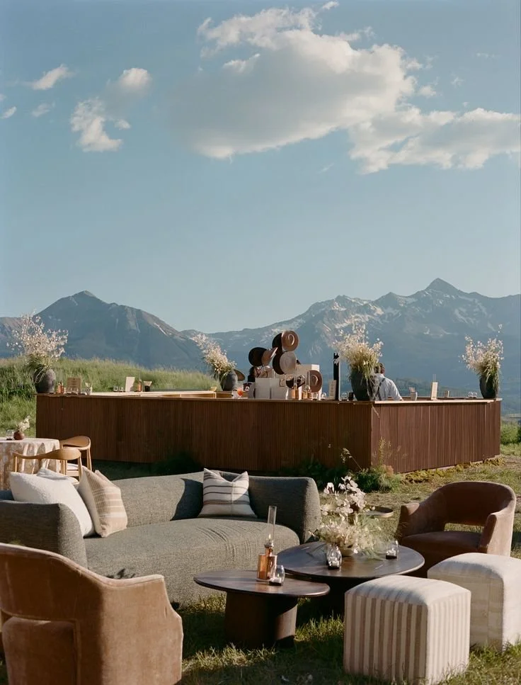 Inspired by your vision and the possibility of hosting on the family ranch, the design would focus on enhancing the natural setting, creating a chic ranch aesthetic that is equal parts elevated and effortlessly relaxed.